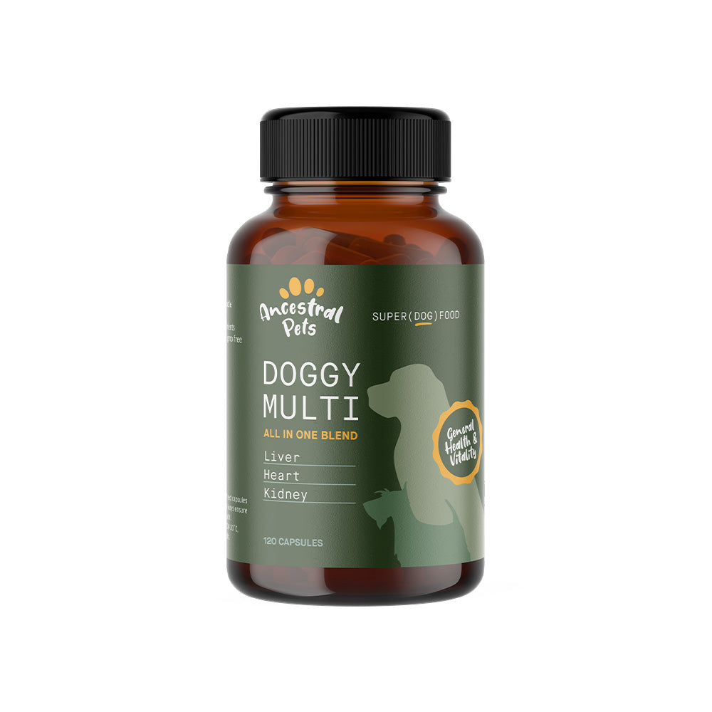 Ancestral Pets Doggy Multi is the best way to super charge your dog's diet. Simply feed to your dog like any other treat to add critical nutrients to their diet